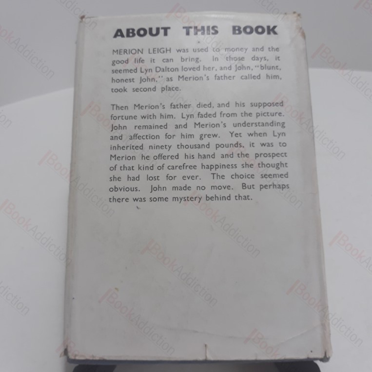 1st ed, 1st imp. Blue cloth boards (edge worn, rounded at corners and spine ends, a few marks, cloth rippled over one corner). Lending sheet on front free endpaper, no other library markings. A few mild marks on pages. In its original worn and edge-bumped dust jacket (cracks on folds, crumbling at spine tips, shelf wear). Dust jacket now in archival-quality mylar wrapper to protect & prolong the life of the jacket. It is not adhered to the book or to the dust jacket. Ayres was a prolific and popular romance author but this title is relatively hard to find in its first edition with dust jacket. Admirers of Ruby M Ayres will know from past experience that she is certain to give them a pleasant, readable, and happy love story.
