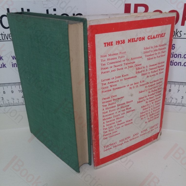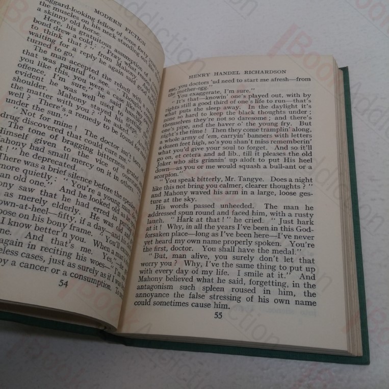 viii, 274pp. Green cloth-covered boards, gilt titles on spine, top text block sprayed black. 16mo. Spine ends lightly rubbed and rounded, corners lightly rounded. Text block edges starting to tan. Light tanning to endpapers. Internally neat, clean, bright and tight. Dust jacket has light shelf wear, chipping to edges, mirrors book damage; not price clipped. Modern Fiction contains a selection from two dozen novelists of distinguished talent, chosen to illustrate characteristic aspects of their work.