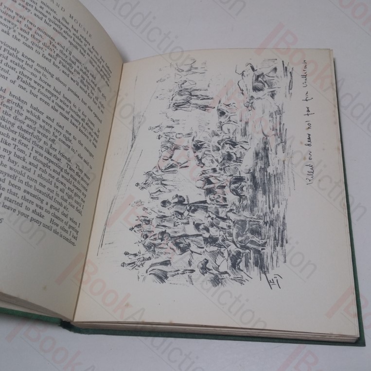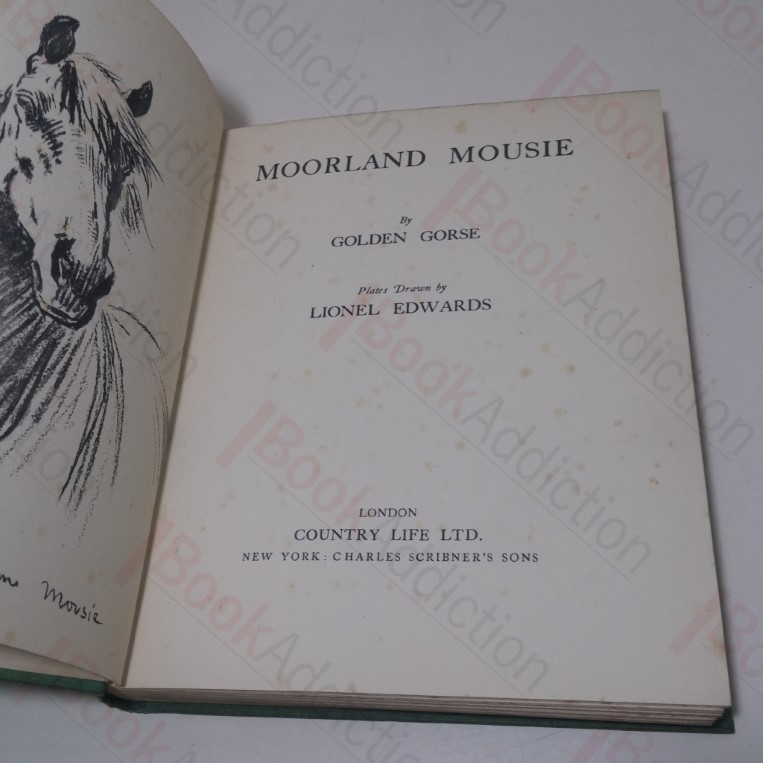 Popular edition reprint.  106pp, with monochrome plate frontispiece and 15 further plate illustrations, all drawn by Lionel Edwards. In green cloth-covered boards with red lettering front and spine.  Cloth gently rubbed at edges.  Text block edges darkened.  Some spotting on endpapers and first and last few leaves else internally neat, clean, bright and tight.  In its original, illustrated dust wrapper, rubbed and chipped on edges and corners, worn, faded and shelf worn with minor loss at base of spine and along rear lower edge.  The delightful story of an Exmoor pony and his young owner,  together with Lionel Edwards’ attractive drawings.