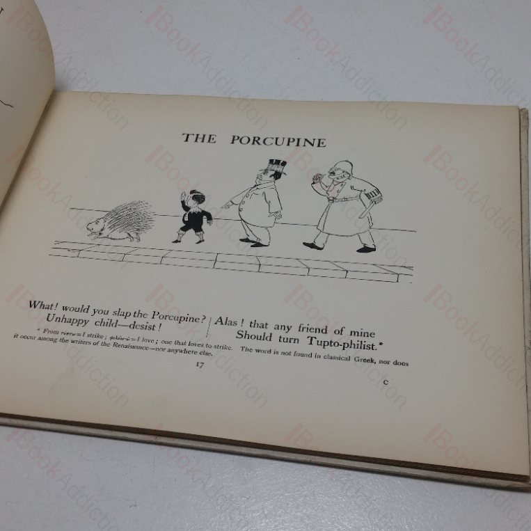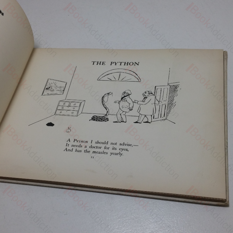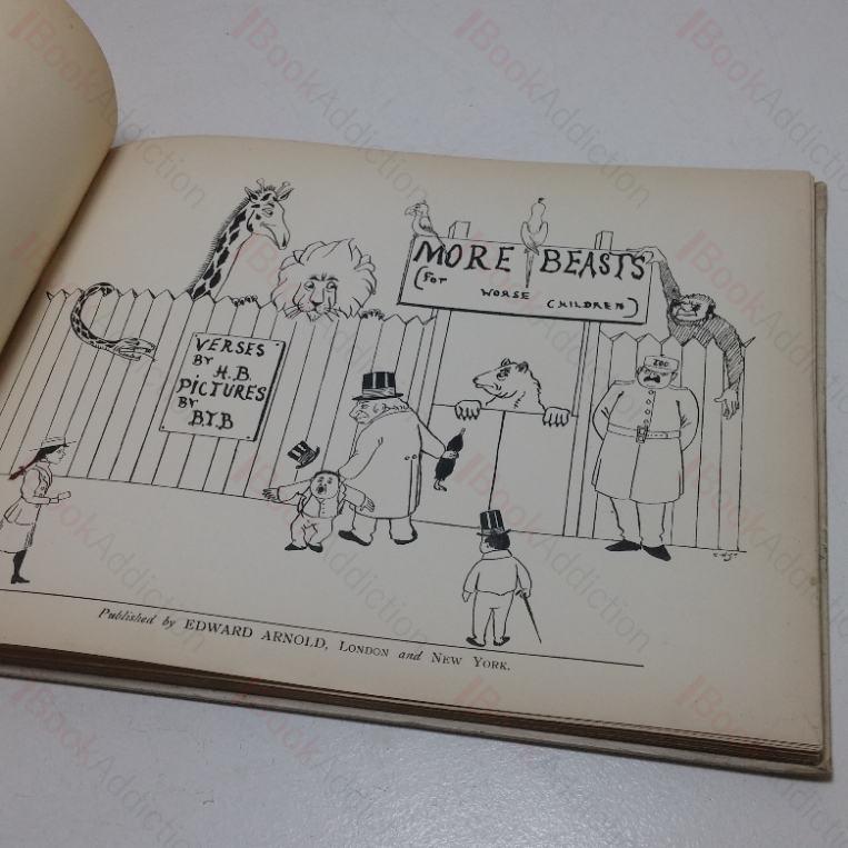 Undated [1897], First edition, first impression. 48pp. most having a large drawing and short verse. Buff cloth spine with pictorial paper-covered boards. Landscape 8vo. Boards a little soiled and grubby, lightly rubbed at at edges with rounded corners. Internally some page aging else clean, neat and tight, with a stamp on the front free endpaper stating ‘with the publisher’s compliments’. Blackwood’s amusing pen and ink sketches are delightful – the Indian elephant reading in particular. Uncommon is early editions and scarce in this ‘good’ condition. Volume now protected in a Mylar-sleeve fitted without the use of tape or adhesives.