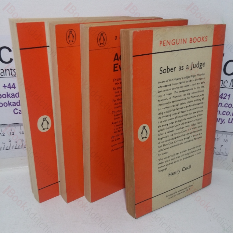 A collection of four vintage penguin orange paperbacks all by Henry Cecil (nos. 1747, 1748, 2381, and 2380 in the Penguin Orange series).  Mass market paperbacks in light card covers.  12mos.  All volumes are in generally good condition with some gentle shelf wear to card covers, a little fading over spine and mild page ageing internally.  Much in Evidence has a mild, short crease over the lower leading corner of the cover.
