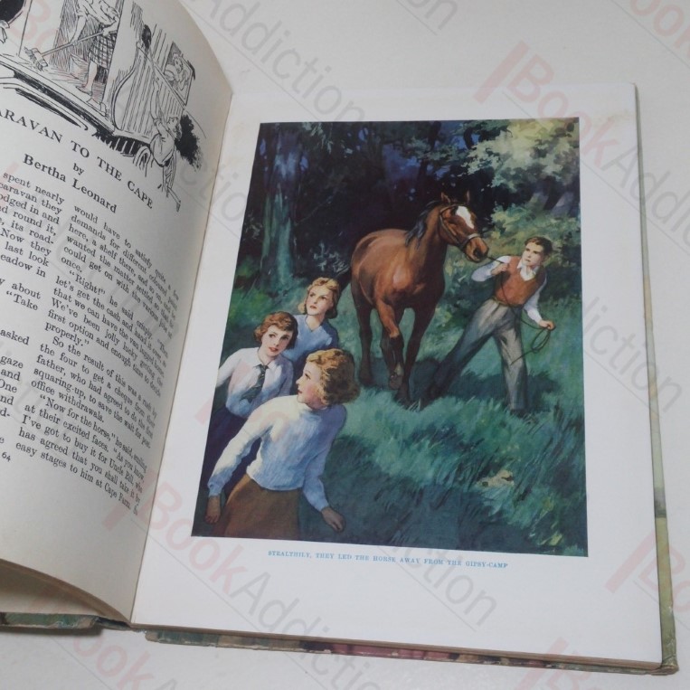 [1949]. 126pp, with colour plate frontispiece and three full page colour plates, numerous further lines drawings in text. In pictorial boards with linen spine. 4to. Lovely bright boards with a little rubbing on edges, more pointedly on corners. Linen spine has been trimmed at ends where it was likely fraying. Internally neat, clean, bright and tight. In its original dust jacket, worn, chapped on edges, with a few mild marks, light creasing on spine folds, a little indented and perhaps a tad faded. A collection of stories for girls from some of the most popular authors of the day.