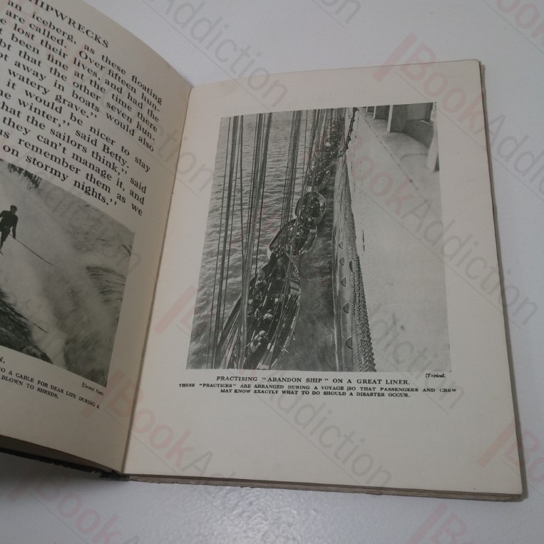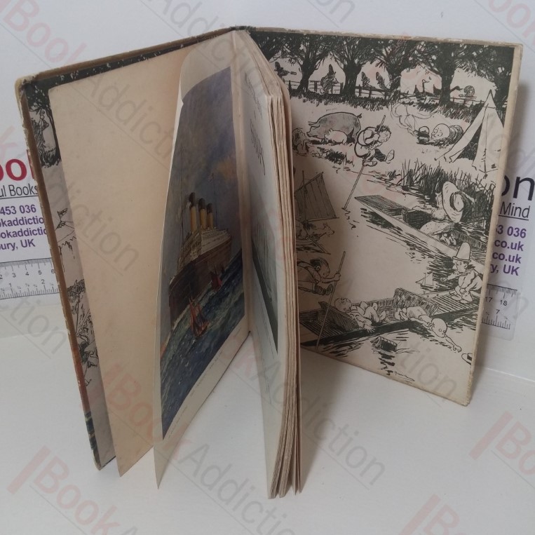 Undated (circa 1930s), unpaginated [approx. 64pp]. 2 coloured plates (inc. frontispiece), 60 illustrations throughout. Quarter-bound in green cloth under pictorial paper-covered boards, red titles on front; endpapers illustrated with humourous scenes. 4to. Spine ends and corners rubbed and rounded, board edges moderately rubbed. Gutter slightly cracked between frontispiece and title page, volume loose. Internally a neat, clean, bright and tight volume. Beautifully illustrated with delightful narrative told in story form of the ships and the sea.