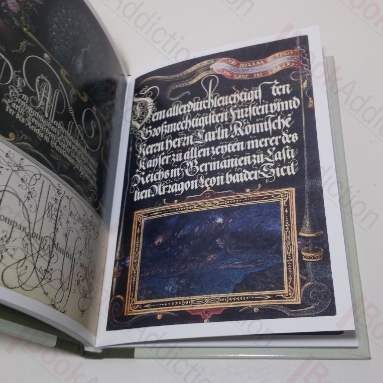 64pp, lavishly illustrated in full colour. In laminated, illustrated card covers, linen spine. Green endpapers. 12mo. Tiny mark on rear board, else in as new condition throughout. The fascinating court of Rudolf II – Holy Roman Emperor – produced nothing more amazing that the Mira Calligraphic Momumenta, a flamboyant demonstration of two arts – calligraphy and miniature painting. In this volume, 41 of its pages are made available to a wide audience for the first time. Gorgeous examples of botanical illustrations and elegant calligraphy.