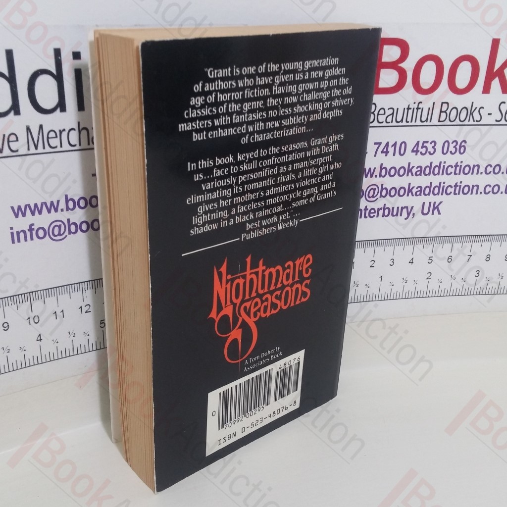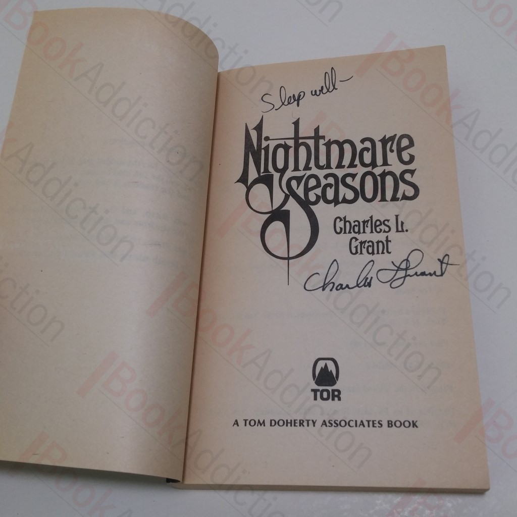 Mass market paperback. 250pp. In illustrated light card covers. Signed and inscribed on the title page, ‘Sleep Well, Charles Grant’. 12mo. Very gentle edge wear to card covers, hint of toning at page edges.