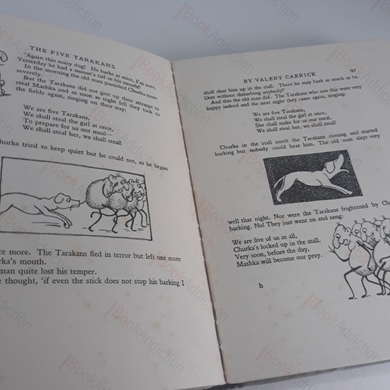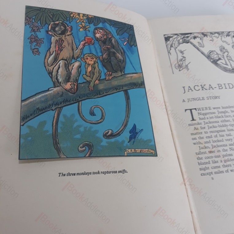 Not dated but c 1920. 248pp, six full colour illustrations tipped-in. Dozens of black and white illustrations, some in-text, others full page. Blue cloth-covered boards with blue lettering and illustrations. Rounded spine ends. Light foxing throughout, but not affecting illustrations. Previous owner’s inscription, dated 1934, on half title page. In its original dust jacket (a little rubbed in places with minor loss at spine ends. Glorious children’s annual with tales & poems including The Fruitstoners by Blackwood and Kings of England by Laurence Housman. Dust jacket now protected in an archival-quality Mylar wrapper which is not adhered to the jacket or book in any way. Overall al lovely example with gleaming colour plates, scarce with dust jacket. 4to