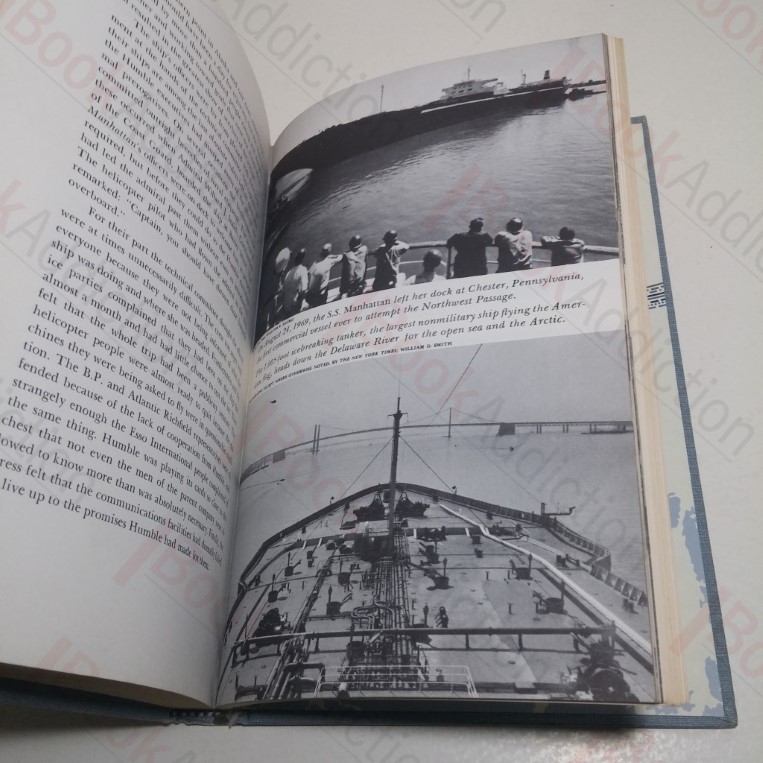 204pp, two sections of black and white photographs. Grey cloth-covered boards; blue logo on front, blue titles on spine. Lightly bumped bottom corners and spine ends. Text block edges starting to tan. Map endpapers. Internally neat, clean, bright and tight. Dust jacket has internal tape repairs that have bled through jacket, rear has lamination fault from manufacturing error, light shelf wear, chipping to edges, mirrors book damage, price unclipped. 8vo. The dramatic story of the voyage of the SS Manhattan through the legendary Northwest Passage – the sea route through the Arctic Ocean which connects the Atlantic and Pacific Oceans. The Manhattan’s voyage was designed to prove that a commercial route was a viable option via the Passage and is told by the only newspaperman accompanying the trip.