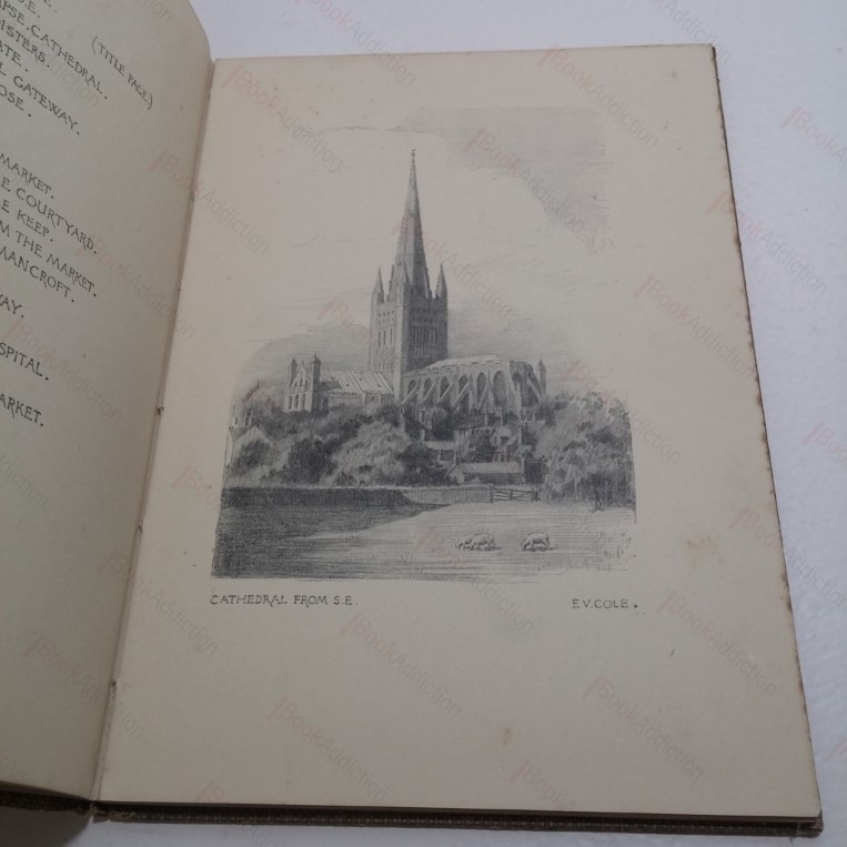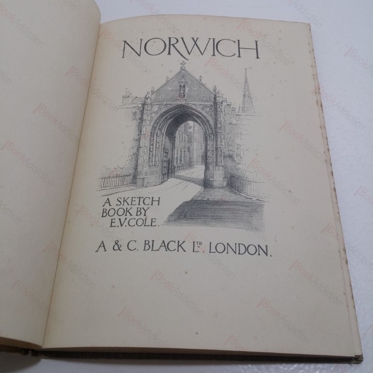 Unpaginated. Brown ‘birds-eye’ cloth-covered boards, tipped-in plate on front with titles. Bumped spine ends and corners, cloth wearing through. Text block edges foxing. Prelim pages foxing; otherwise internally neat, clean, bright and tight. No dust jacket. Series of 24 drawings of buildings of the old Norwich over eighty-five years ago.