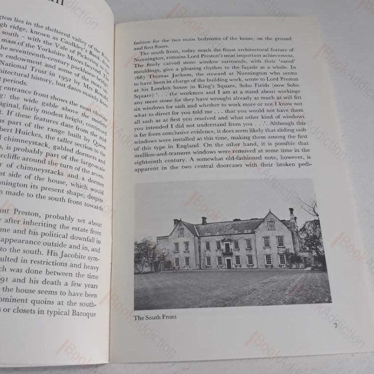 40pp, numerous b/w illustrations. Stapled booklet with printed, illustrated card covers (a little worn at edges, minor bump to one corner on verso). Internally neat, clean and fresh. An account of the history and development of Nunnington Hall, just south-east of Helmsley in North Yorkshire, giving an overview of its architectural development, local significance and the families who inhabited it. Small 8vo.