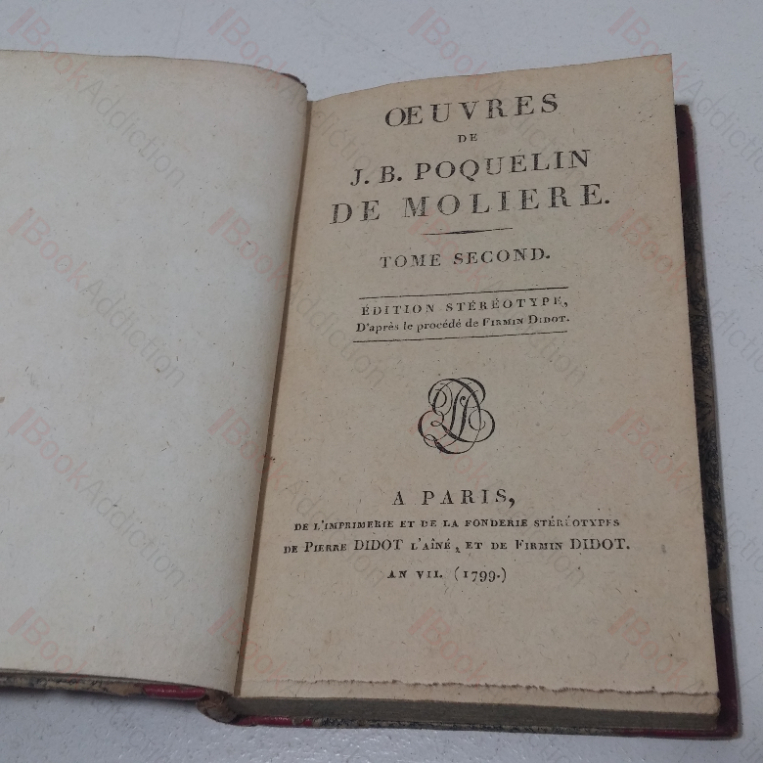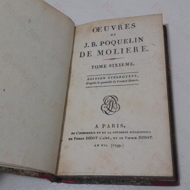 J B Poquelin is better known by his stage name of Moliere: a playwright and actor considered one of the finest masters of comedic writing. Stereotype edition, printed using the process developed by Firmin Didot.
