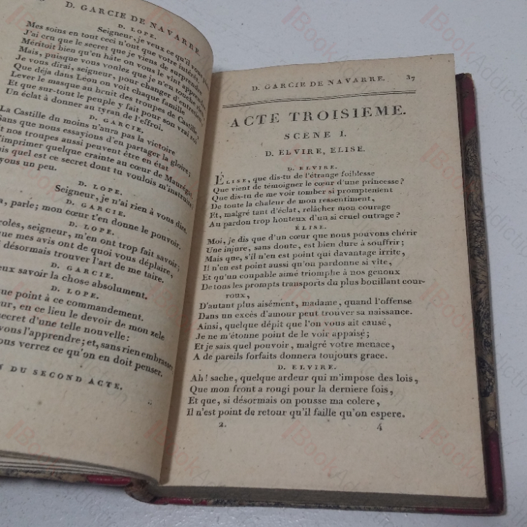 Text in French. Complete set in eight volumes. Uniformly half bound in red calf’s leather over marbled boards, with gilt rules and gilt lettering and floral designs on spine. 16mo. Boards and binding rubbed and worn, scuffed around corners and spines. Text block edges toned and dull. Internally some light spotting and aging, especially on endpapers. A couple of cracked hinges. Previous owner’s name inked on the front free endpaper of each volume else internally neat, clean and tight. Binding firm throughout the set.
