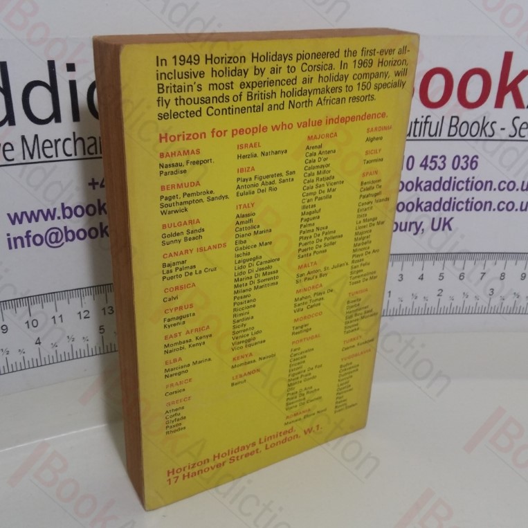 254pp. Pictorial light card covers. Light chipping to edges and wear to covers. Text block edges and page margins tanned. Internally, neat, clean and tight. 12mo. Nostalgic look back at Horizon Holidays comprehensive guide to more than 150 popular holiday resorts in Europe, East and North Africa, Bermuda and The Bahamas for 1969.