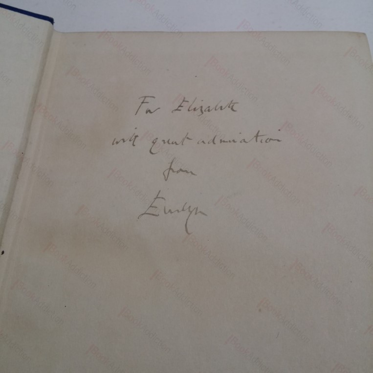 First edition, first printing (true first). 336pp. Black cloth-covered boards, gilt titles on spine. Spine and titles sun faded. Bumped spine ends. Some shelf wear and small stains to covers. Blue stained top edge, light foxing to other edges. Free endpapers and first/last pages tanning. Signed and inscribed by author on front free endpaper ‘For Elizabeth with great admiration from Evelyn’. Internally neat, clean, bright and tight. Dust jacket mylar wrapped (not adhered to jacket) has some shelf wear to rear, 3cm closed tear top front and two small tears at front corners. Price unclipped. 8vo. The second novel in the Sword of Honour series recording the tumultuous wartime adventures of Guy Crouchback.