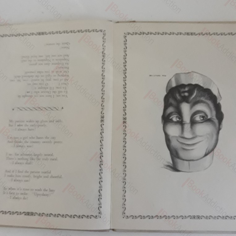 28pp. A collection of Rex Whistler’s grotesque and amusing ‘reversible’ faces, with text and verses by his brother Laurence. The entries can be read right-side-up and up-side-down. Illustrated paper boards (a little rubbed and discoloured at edges). Internally neat, clean, bright and tight. In its original dust jacket (chipped in places, a couple of short tears over spine, and small portion missing from base, fragile).