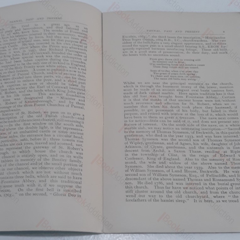 Not dated but perhaps c 1920. 24pp printed booklet with stapled card covers. (Covers a little worn and marked, toned around spine). Internally neat and clean with touch of page toning. A brief history of the Yorkshire parish of Pannal written by a one-time vicar of the parish, covering the six hundred years or so up to around 1890.