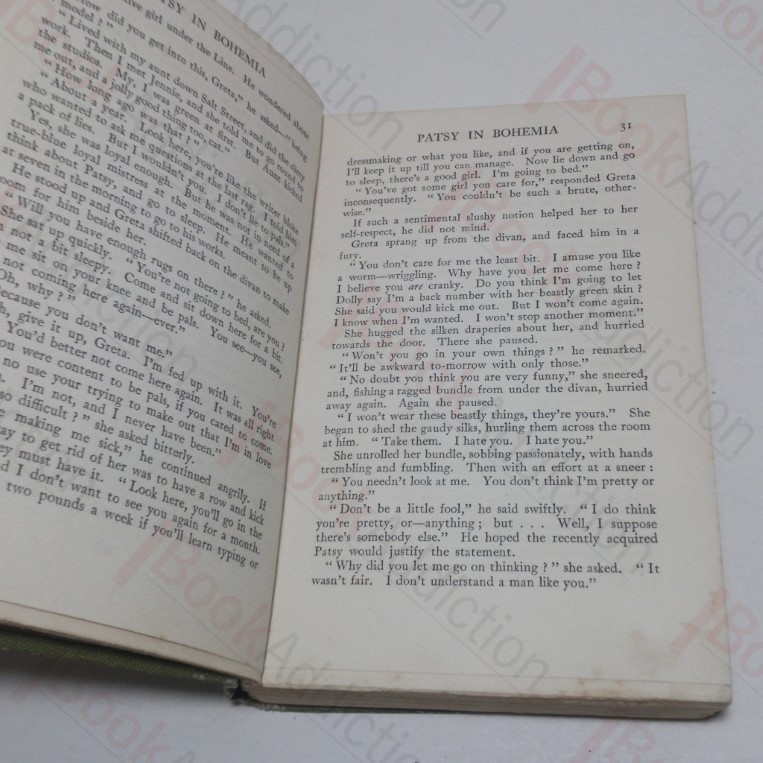 Patsy is a modern, restless, sensation-hunting girl. But she has made a wretched marriage. Then she meets Carstairs at a party in Bohemia. Their meeting leads into a mysterious world of tiny restaurants crowded with curious, haggard folk, high-art clubs and luxurious flats of those absurd aspirants of fame. A sad but clever novel. This is one of the harder to find novels that Banister wrote in the early years of the 10th century.