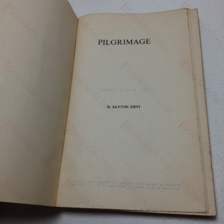 A scarce first edition copy of Savitri Devi’s record of her post-second world war pilgrimage to Germany. Savitri Devi Mukherhi (born Maximiani Julia Portas) was a French-born writer, Nazi sympathiser and spy. During the second world war she served the Axis cause by spying against the Allied forces in India. An exponent of Esoteric Hilterism, she was a leader of and influential among the neo-Nazi underground movement in the 1960s. A proponent of a blending between Hinduism and Nazism, she saw Adolf Hitler as a sacrifice for humankind which would end the worst age the world had seen, a state which she blamed upon the Jewish nation. She was also a radical and committed animal rights activist and vegetarian.