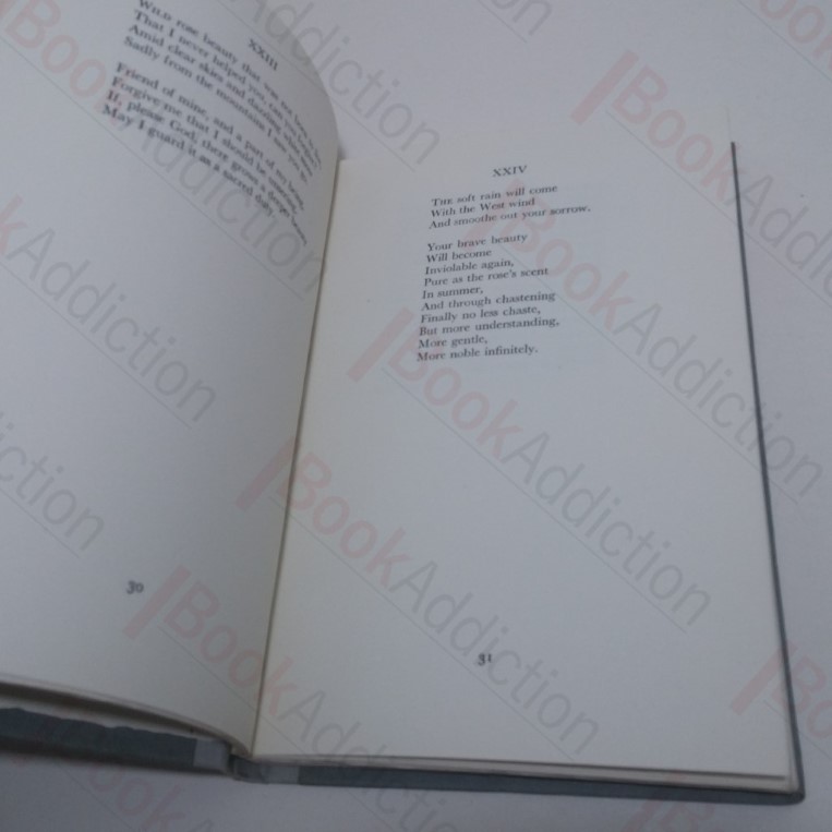 First edition, first printing. 120pp. Quarter-bound in pale blue cloth over deeper blue boards. 12mo. Very gently rounded at corners and spine ends. Ex lending library with usual markings. Internally neat, clean, bright and tight. In original paper dust jacket, gently bumped at edges. A collection of verses and poems.