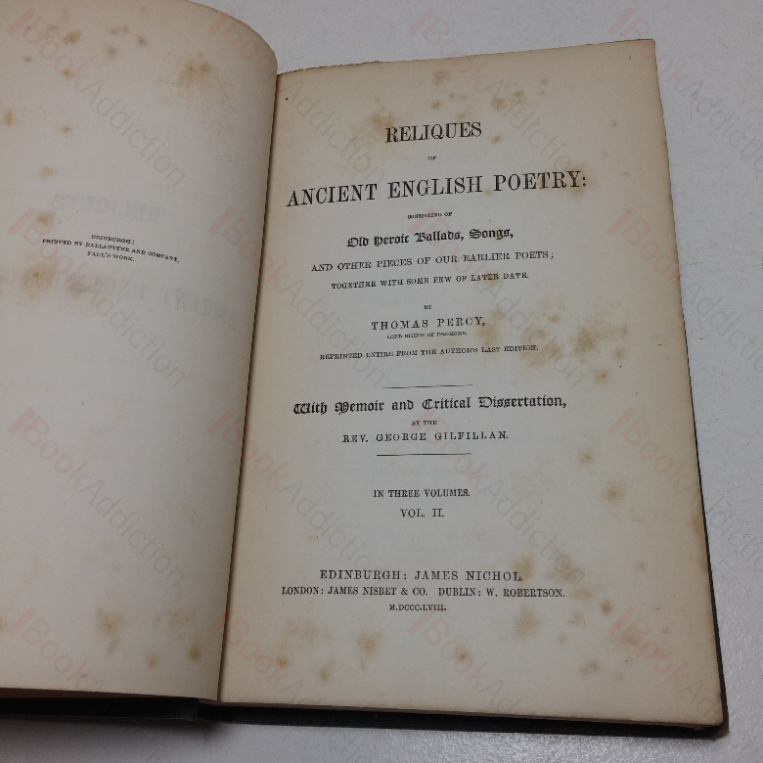 Reliques of Ancient English Poetry, Consisting of Old Heroic Ballads, Songs, and Other Pieces of our Earlier Poets, Together with Some Few of Later Date, and a Copious Glossary (Volumes I-III)