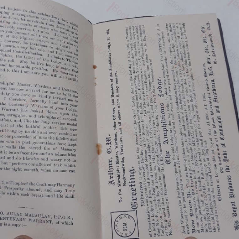 Report of the Centenary Festival of the Amphibious Lodge, No. 258, Heckmondwike, 6 May 1903