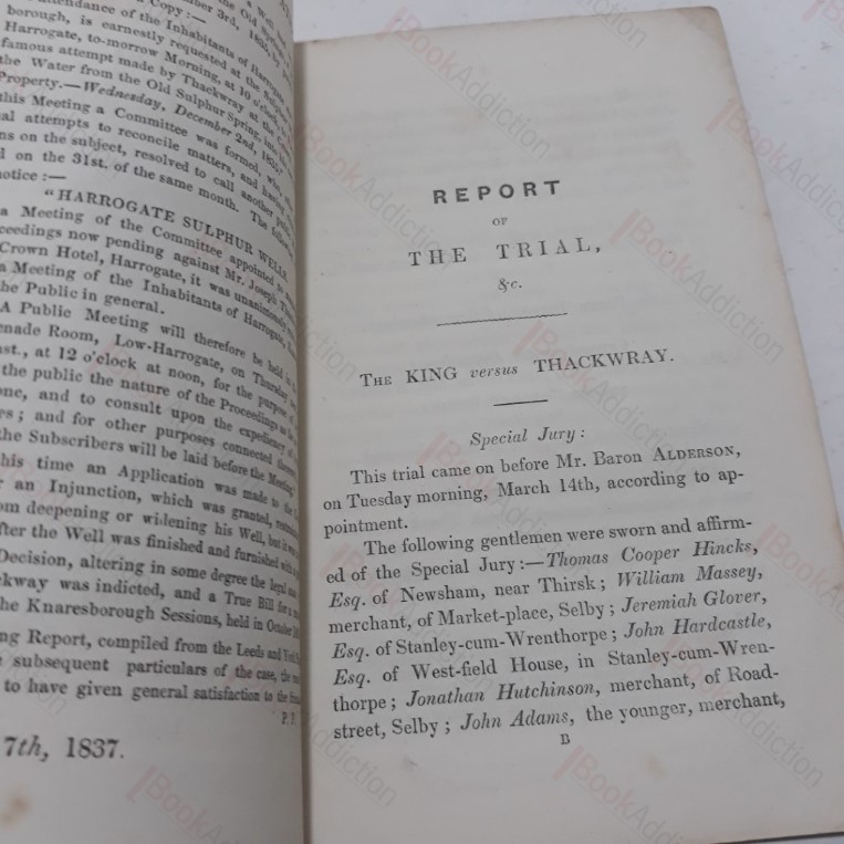 Report of the Trial, The King v. Thackwry, Respecting the Sulphur Wells at Low-Harrogate, with Notes etc