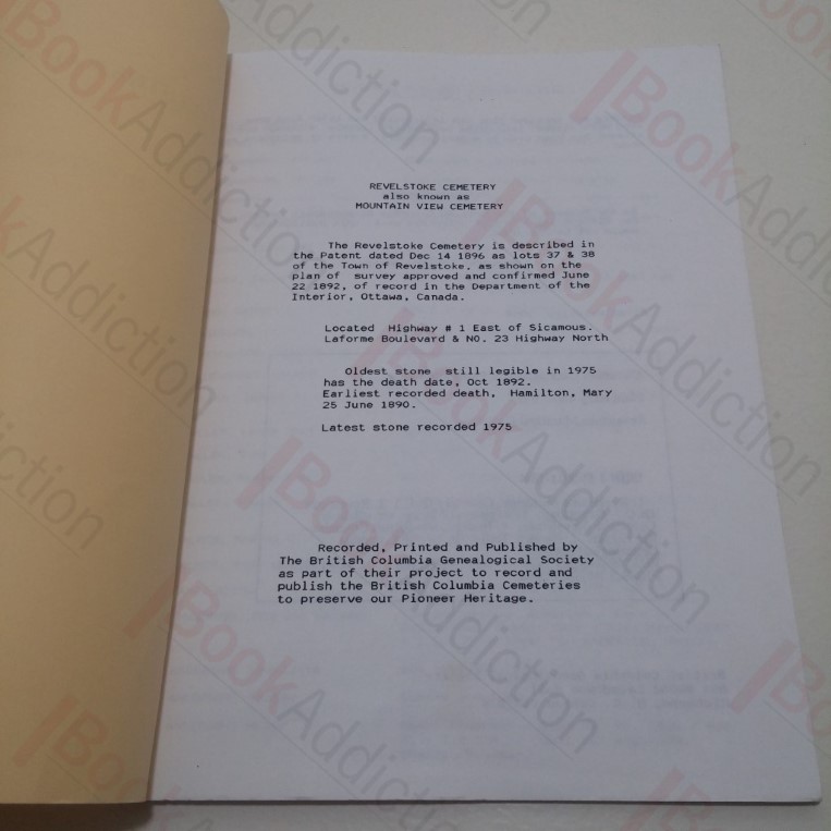 66pp. A record of the legible stones in the BC cemetery – latest recorded stone is 1975. Very good clean copy with small crease to cover. 4to.