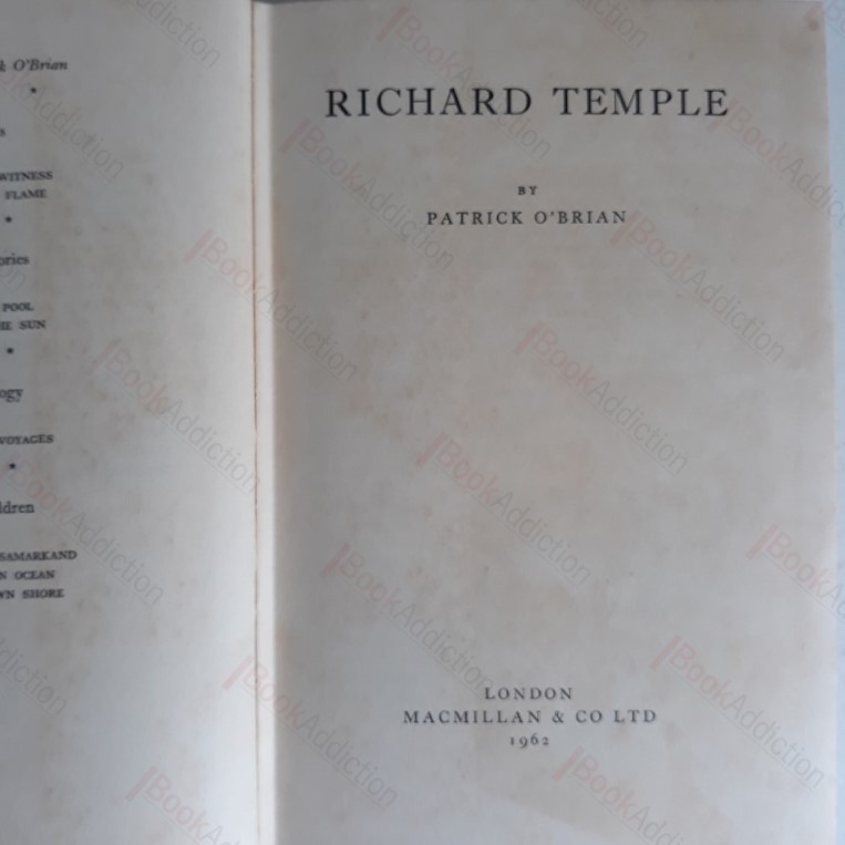 First edition, first printing (true first). 284pp. Green cloth boards with red lettering on spine. (Boards slightly rounded at corners and spine tips. Text block edges a little toned, some faint occasional spotting on prelims, else bright, neat and clean internally. In its original price clipped dust jacket (a little rubbed and bumped at edges, mild shelf wear). DJ now protected in archival-quality mylar wrapper. O’Brian, known for his Jack Aubrey and Stephen Maturin novels, here presents an anti-hero in Richard Temple, born a misfit, a man who betrays his principles and his full of apparent contradictions.