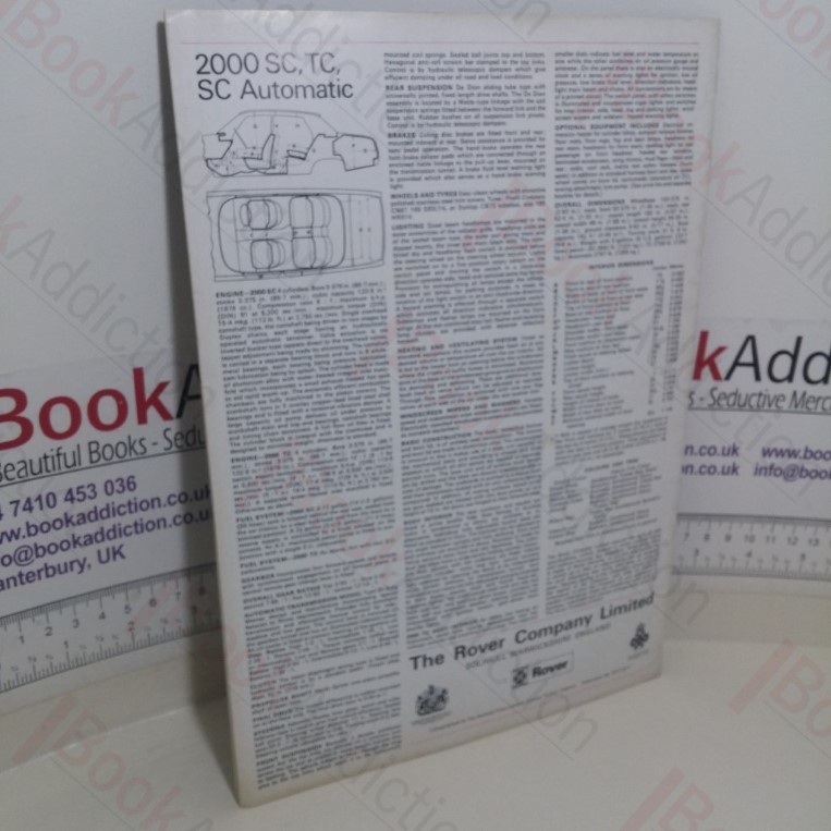 16pp stapled booklet, in light card covers, profusely illustrated in full colour. 4to. A little gentle edge wear to card covers, hint of toning on rear cover. Internally neat, clean, bright and tight. A sales brochure for Rover cars from 1971, featuring the Rover 2000 SC and SC Automatic, 2000 TC, Rover 3500 S, Rover 3500, Rover 31/2 Litre Saloon, Range Rover, with specifications, and wonderful 1970s style photography of the range of cars.