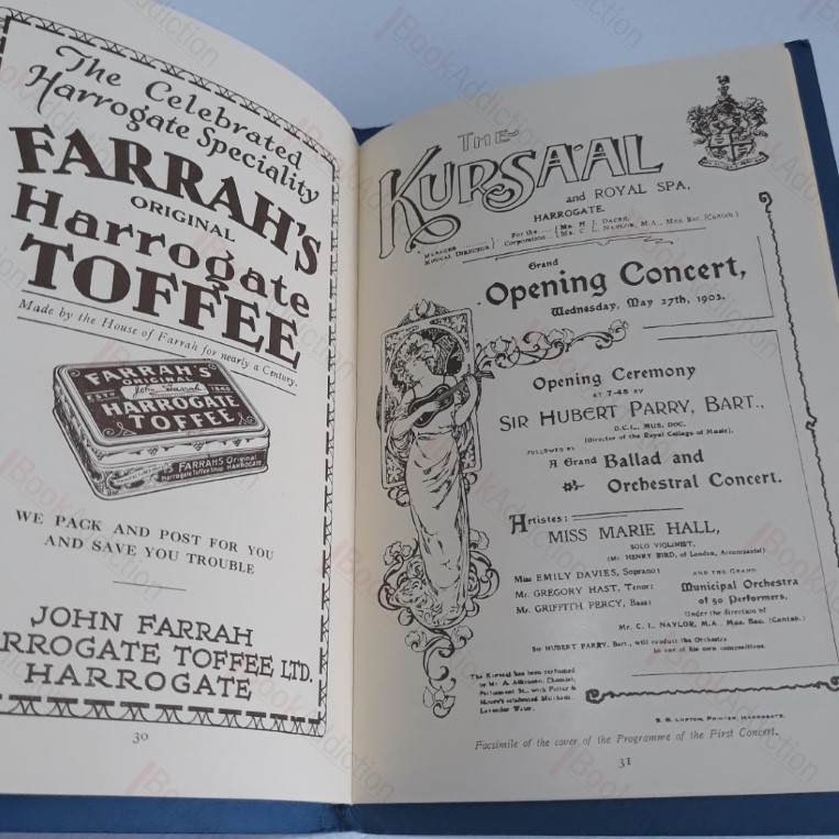 64pp, with numerous photographs and advertisements throughout. Card covers; stapled. Cover slightly rubbed at corners. A couple of light blemishes on the front. Internally clean and clear; readable and unique. Includes articles and essays on various aspects of Harrogate, including Music of the Past, the Royal Hall, ‘The Cure and the Music’ etc. 12mo.