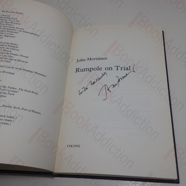 256pp. In black cloth-covered boards with gilt titles. Signed by John Mortimer on the title page. 8vo. Top text block edge discoloured, else neat, clean, bright and tight throughout. In its original dust jacket (gently bumped along upper edge, minor shelf wear). A very nice, attractive copy, signed by the author. Defender of the Faith, Horace Rumpole returns to delight readers with seven new cases.