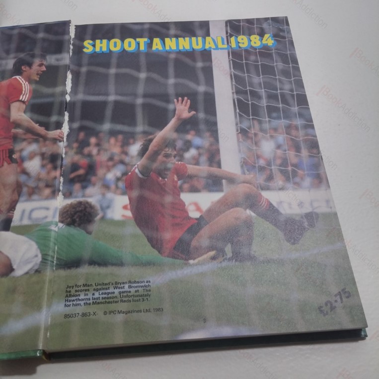 127pp, lavishly illustrated in full colour throughout. In glossy card covers (very slightly bruised at base of spine). Internally neat, clean, bright and tight. A very good copy. The Shoot! magazine’s annual for 1984 packed full of features and articles on soccer teams, players, managers and football games, etc. Lots more Shoot! Annuals in stock, generous discounts for multiple purchases – please inquire.