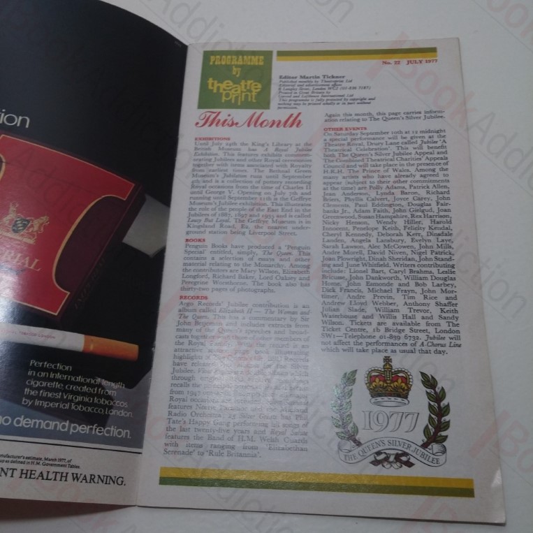 20pp. Printed paper covers, stapled. Some shelf wear. Internally neat, clean, bright and tight. 8vo. Theatre programme for the show at the Wyndham Theatre in 1977. Cast included: Maggie Fitzgivvon, Gay Soper, David Firth and Robin Ray. Illustrated with black and white photographs and period advertisements.