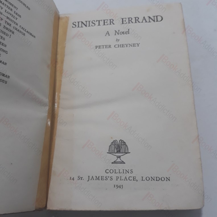 First edition, first printing. Pale orange cloth boards (worn and soiled at edges, a few marks). Lending sheet on front free endpaper, no other library markings. Some spotting on well thumbed pages. Early pages are softening. In its original dust jacket (mildly bumped and rubbed at edges, crumpled a spine ends, spine creases, shelf wear). Jacket fitted with archival-quality mylar wrapper to protect & prolong its life. It is not adhered to the book or to the jacket. Many more of Peter Cheyney’s titles in vintage editions in stock. See our blog post on Peter Cheyney.