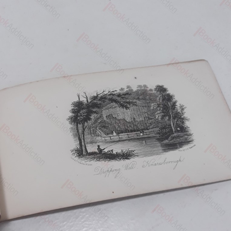Not dated but mid 19th century. Stitched, oblong booklet containing six engraved views of Knaresborough, including the Church, Castle and Dropping Well etc. Front cover absent, some toning at page edges (not affecting images), rubbed at edges and visible shelf wear on rear cover. Lovely, evocative set of images of Old Knaresborough. Oblong 48mo (c. 4 by 7 inches)