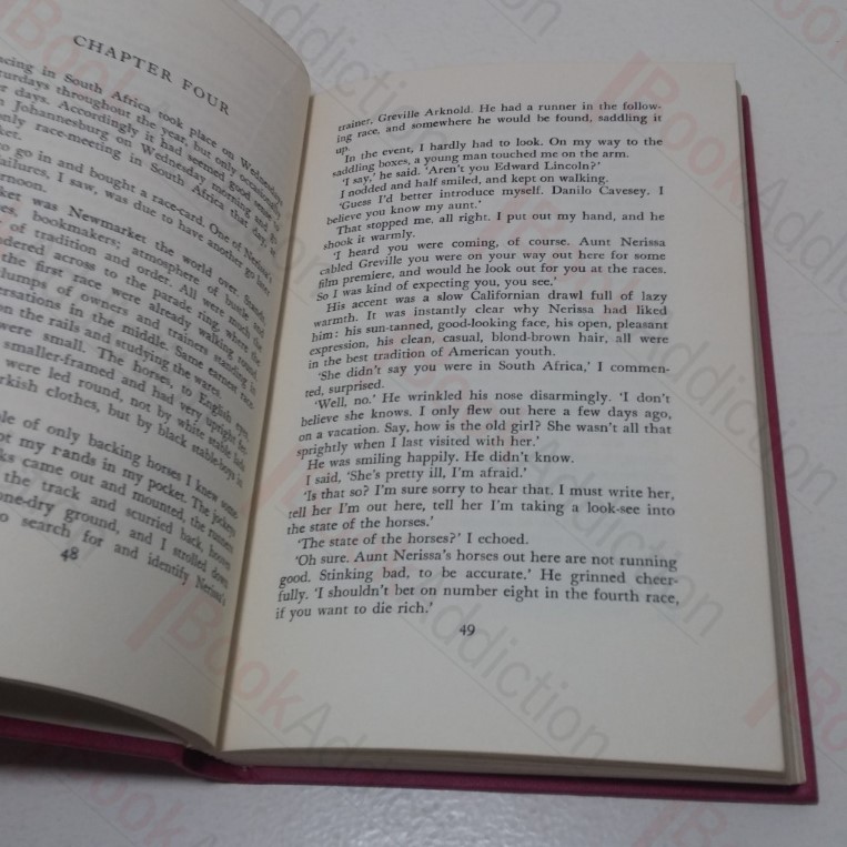 First UK edition. 220pp. Fuchsia cloth-covered boards; gilt design on front, gilt titles on spine. 8vo. Top text block edge just starting to tan. Endpapers just starting to tan. Signed and inscribed by author on front free endpaper ‘Very best wishes Dick Francis’ in blue biro. Internally neat, clean, bright and tight. Dust jacket has very light shelf wear, not price clipped.