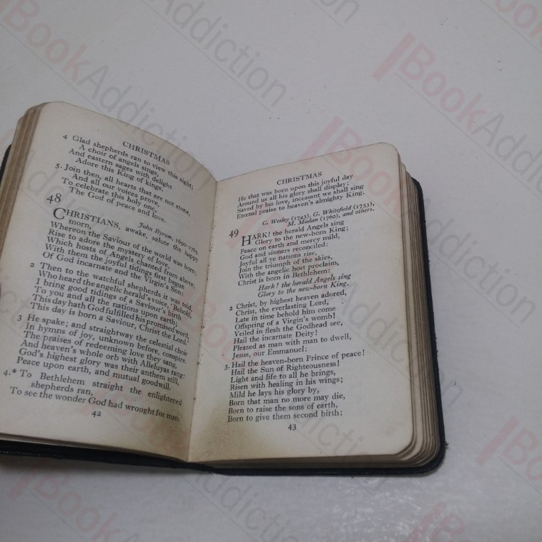 xiv, 416pp. Printed on Bible (India) paper. Fully bound in black textured leather with gilt lettering. All edges gilt. Black endpapers. Small 32mo. Leather a little rubbed at edges, spine lettering faded. Hint of discolouration at page edges, bookseller’s stamped blind embossed on front free endpaper, else internally fresh, clean and firm. A collection of hymns, arranged in themes for seasonal use and to celebrate Christian festivals and saints, with an introductory preface. Lovely vintage volume, suitable for hand and pocket use, but robustly practical for use.