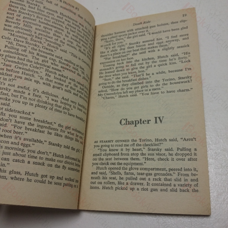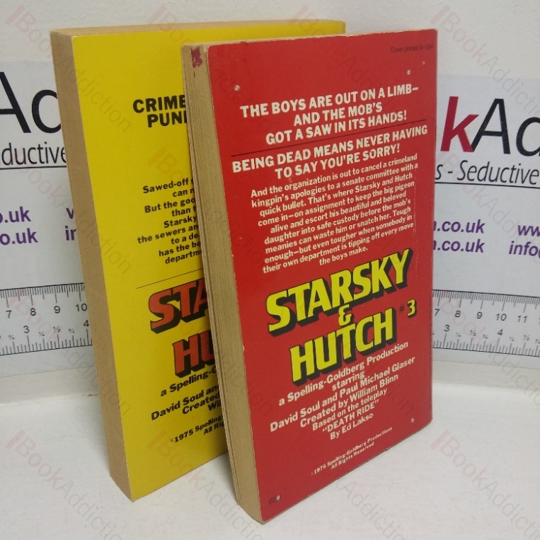 A collection of two vintage Starsky and Hutch paperbacks, published by Ballantine Books in 1976, both 12mo. (1) Starsky & Hutch #1, second special printing very slightly edge wear to card covers, previous owner’s inscription inked inside front cover and a little page toning else neat, clean and tight. (2) Starsky & Hutch #3, Death Ride, 1st special printing, 1976, gentle edge wear to card covers, slightly rubbed at spine ends, previous owner’s bookplate inside front cover and a hint of page toning, else internally neat, clean, nd tight. Really nice copies with still vibrant covers.