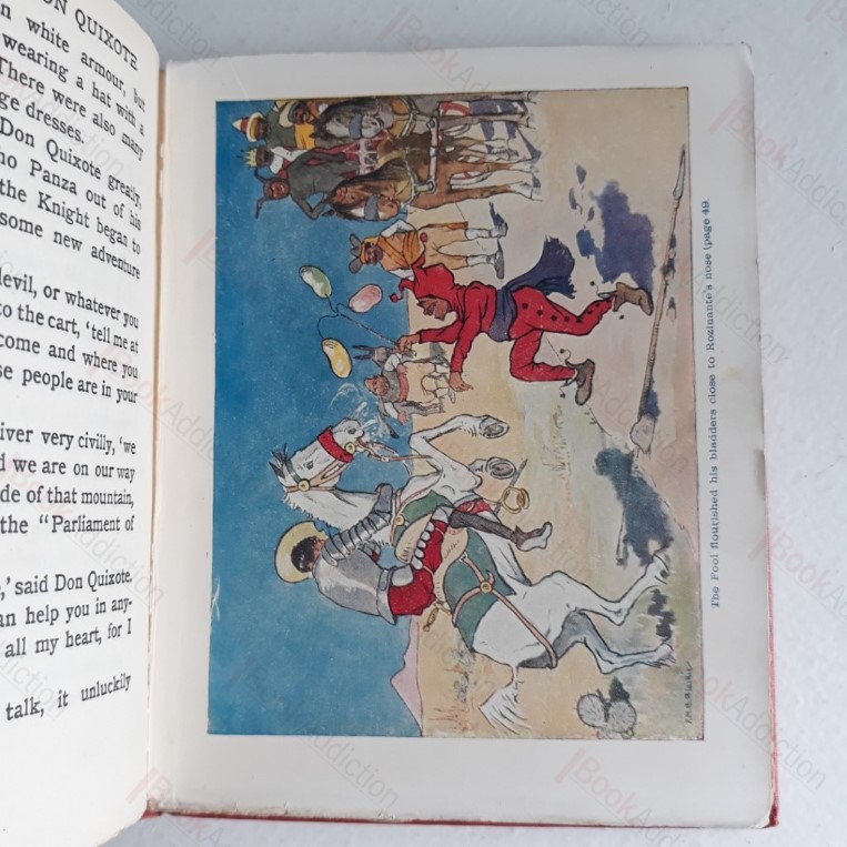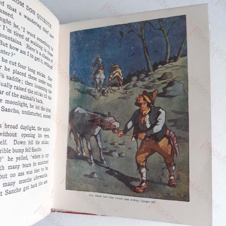 Not dated but c1910. 120pp. Colour plate frontispiece and seven further colour plate illustrations all by F M B Baikie. Red cloth boards, with black lettering and decorations. Boards a little rubbed at edges in places, spine a tad sunned. Internally neat, clean, bright and tight barring two previous owner’s inscriptions on mildly tanned front endpaper and a clumsy repair to reattach the frontispiece. Eight classic tales from Don Quixote, retold for children by John Lang. Lovely, small vintage volume. This edition now hard to find (and not to be confused with the limp-covered, ‘Reading Together’ edition produced by the same publisher at the same time).