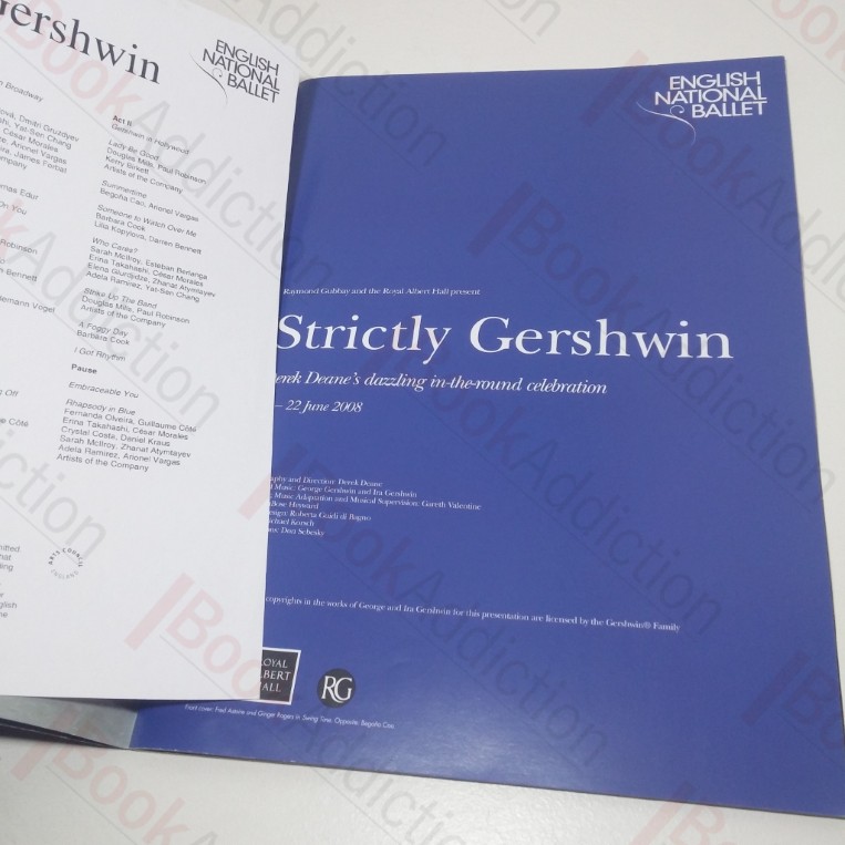 Programme for Derek Dean’s production of Strictly Gershwin in 2008 at the Royal Albert Hall in London, with cast details, context and stunning photographs of the production. Loose leaf flyer for the show performance on 20 June loosely laid in.