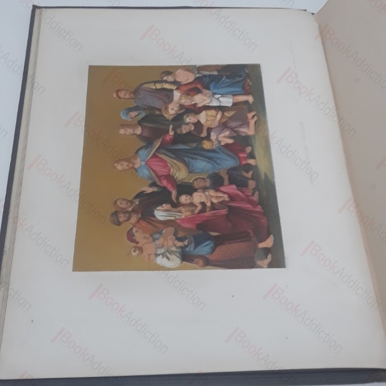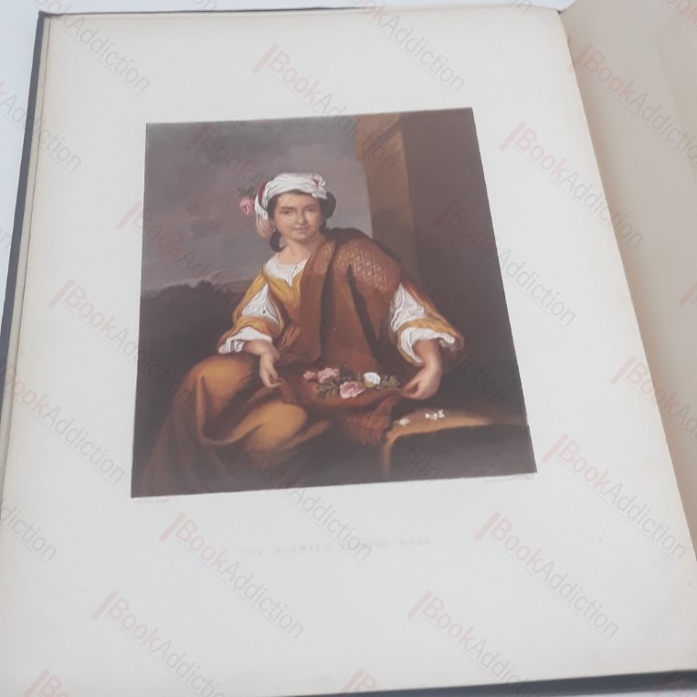 [1862?]. 40pp plus 18 leaves of tissue-guarded plates (chromoxylographs). Plates engraved and printed by William Dickes after Sir Joshua Reynolds, Thomas Stothard, Thomas Gainsborough, and other old masters, with prose illustrations by Rev Bennet George Johns. Blue cloth boards with extensive gilt decoration and lettering. All edges gilt. Large folio. Boards rubbed and worn, especially at corners and spine ends, where there is some fraying and minor loss, a couple of small indentations along upper edge on verso, mild marks. Front free endpaper absent, gutter cracked between endpapers. One plate loose. Others have left impression on protective leaves. Binder’s ticket on rear endpaper – Westleys & Co., London. Prints were first issued in monthly parts, separately mounted, 1859-1862. Dickes biographer, Alfred Docker, bequeathed 1370 of Dickes’ works to the British Museum in 1931. Scarce, hard to find title. LHD notes five copies : British Library, National Library of Scotland, V&A Libraries and Oxford and Cambridge Universities.
