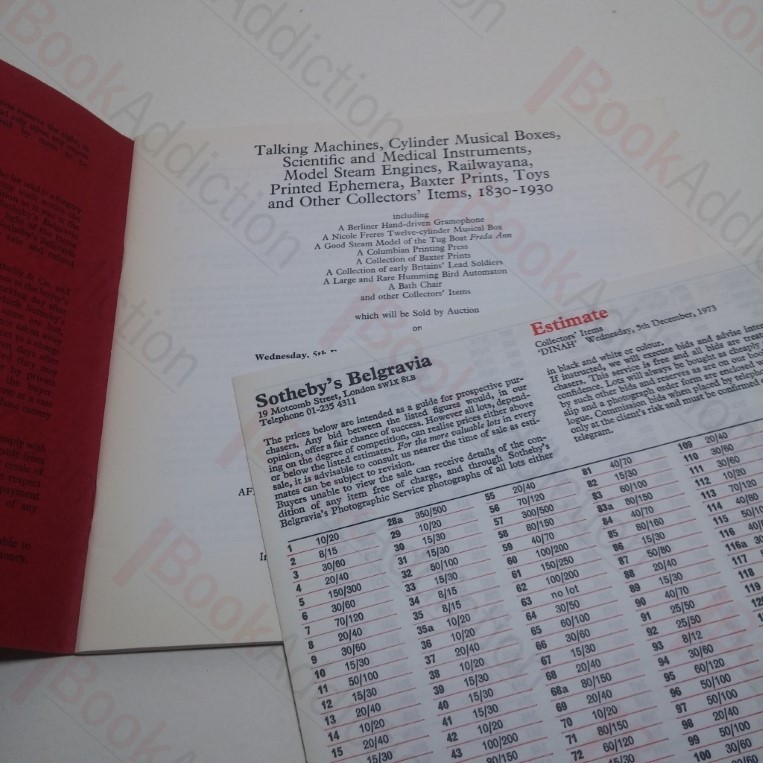Talking Machines, Cylinder Musical Boxes, Scientific and Medical Instruments, Model Steam Engines, Railwayana, Printed Ephemera, Baxter Prints, Toys and Other Collectors’ Items, 1830-1930 (Sotheby’s Auction Catalogue, London UK, 5th December 1973)
