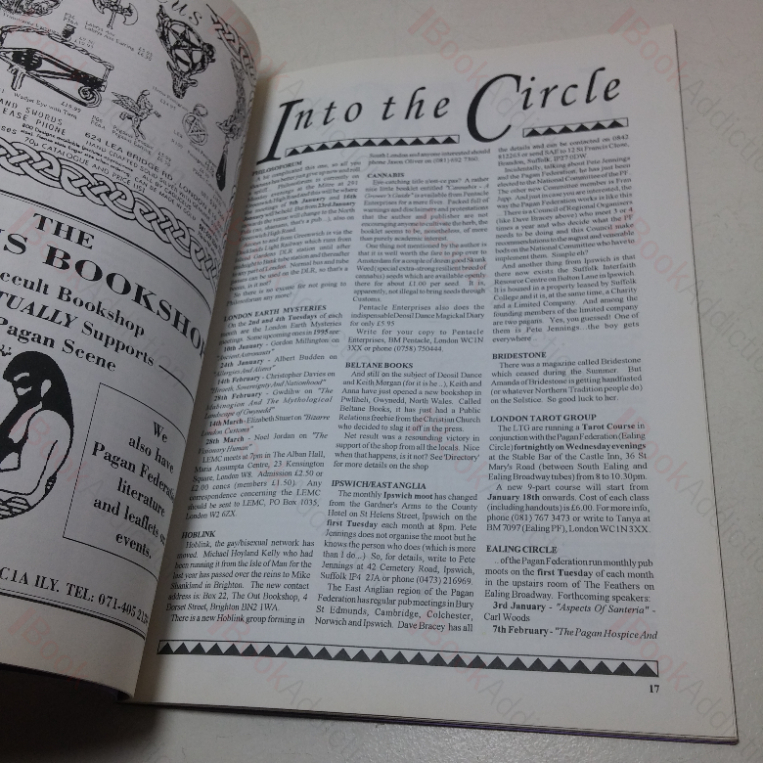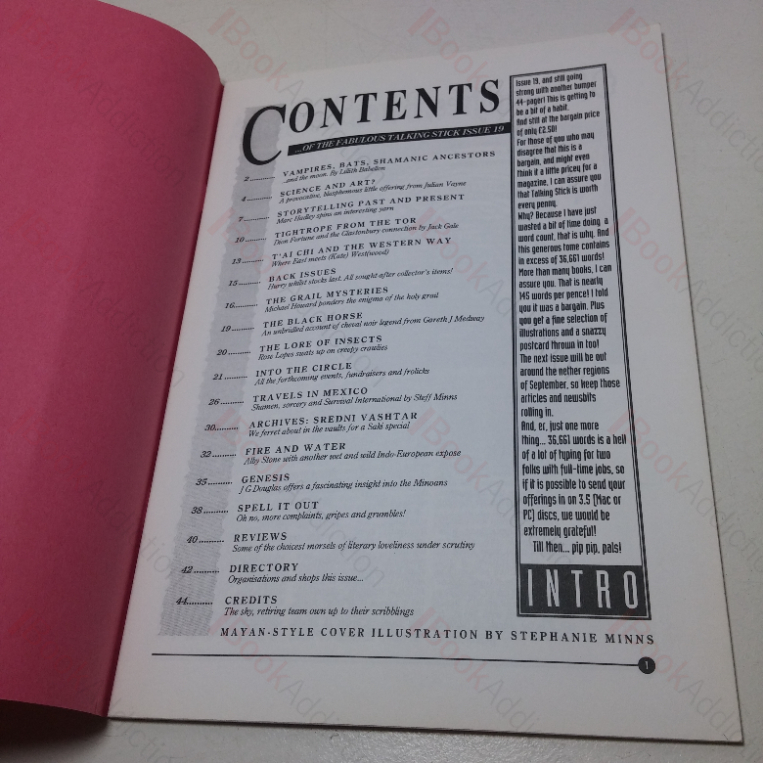 13 early issues of the scarce Talking Stick Magazine, a niche publication on all things magical, mystical and occult, including New Age, medieval grimoires to contemporary pagan lifestyles. Talking Stick is published quarterly. The issues included in this set are issues 2 to IX, XII,, XV to XVII and XIX. All issues circa 36 to 44pp, stapled in stiff card covers with colourfully illustrated bookplate-styles labels on upper panels. 4tos. All issues in very good condition throughout – a little gentle edge wear to card covers else neat, clean, bright and tight.