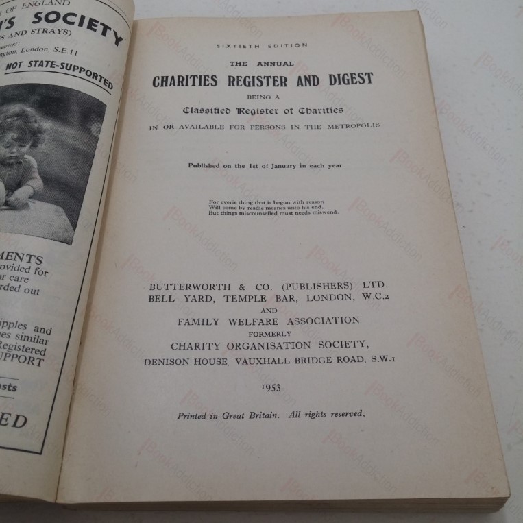 The Annual Charities Register and Digest, 1953, Being a Classified Register of Charities in or Available for Persons in the Metropolis