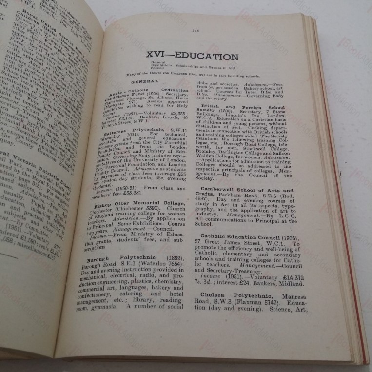 xxxvii, 395pp, xlix-li, lightly illustrated. In plain red cloth-covered boards with black motif and lettering (a little rubbed at edges, markedly on corners). Internally, there are some signs of figuring, else neat, clean, tight and bright. A detailed and granular compendium of the charitable organisations providing help and support to the people of London in the 1950s. Lots of contemporary adverts, mostly for the charitable organisations involved.