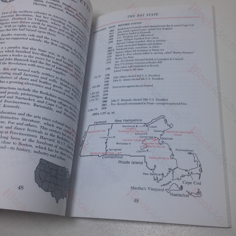A reference and souvenir book with maps and capsule histories of each of the fifty states of the United States of America.