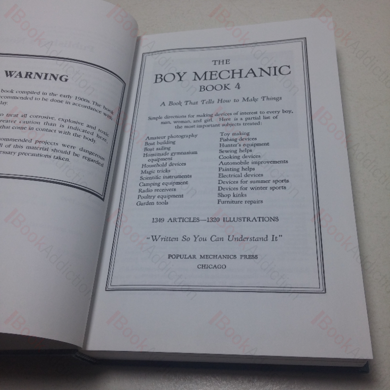 The Boy Mechanic was an early 20th century  series of DIY project books published by the Popular Mechanics Company.  Designed  to develop self-reliance and technical skills in young boys by  providing details instructions for building a range of things from toys to complex mechanical devices.  There were four books in the original series.