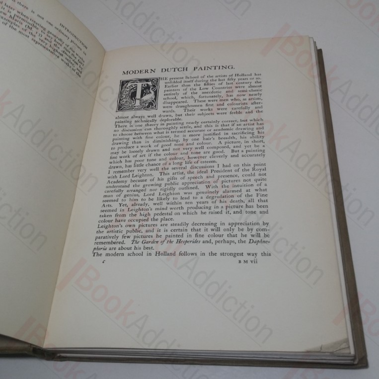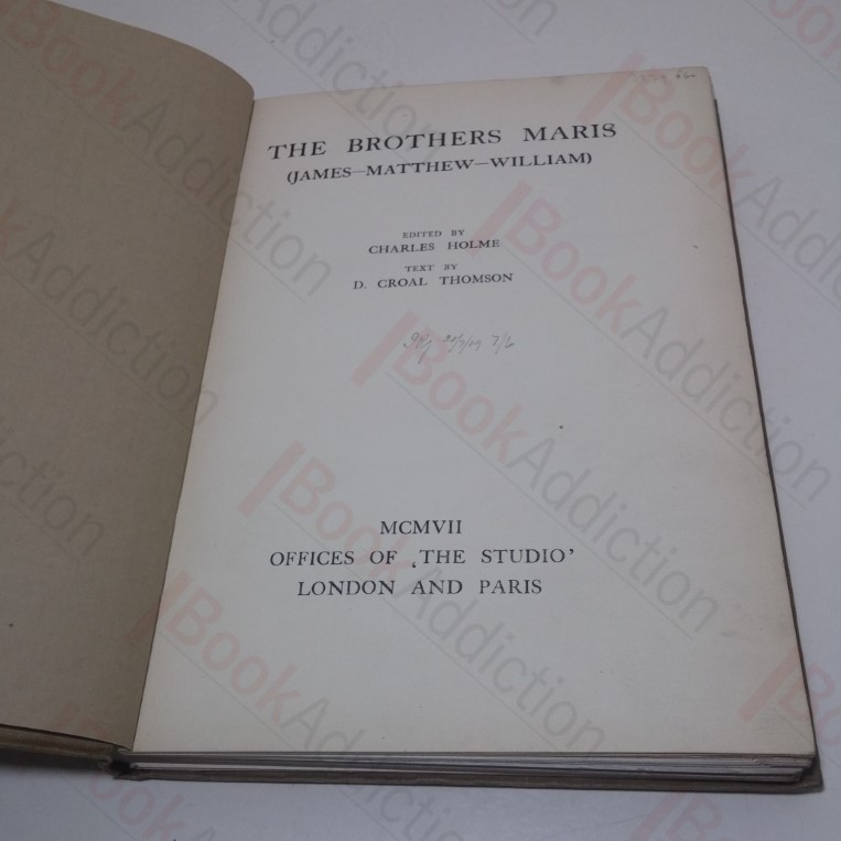 xxxvii, plus many plates (some colour) and dozens of tipped-in photographs mounted on green card all black and white and all tissue-guarded. Dark beige cloth-covered boards with brown titles on front and spine, bevelled edges. Rubbed spine ends and corners. Shelf number on spine. Covers have wear and bottom edges bumped. Reference library label on front paste down. Franked throughout including most plates and photographs. A couple of pages towards end have a repair. 4to. Includes a selection of essays on Modern Dutch Painting, Maris Family History, Methods of Oil and Water Colour Painting, Maris Pictures in America, The Influence of the Maris Brothers etc.