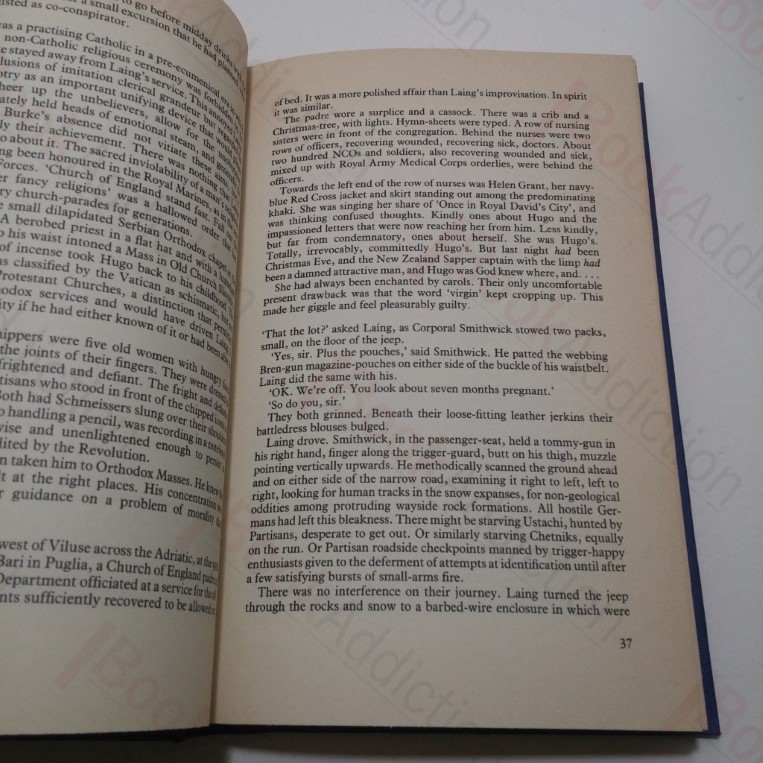 First edition. 328pp. Blue cloth-covered boards, gilt titles on spine. Lightly bumped spine heel. Pages tanning. Internally neat, clean and tight. Dust jacket has some shelf wear, light chipping to edges, mirrors book damage, price unclipped. 8vo. A novel about power, about good and evil and the shadowy land between as the author catches so well what is was like to be a soldier in the field in World War II.