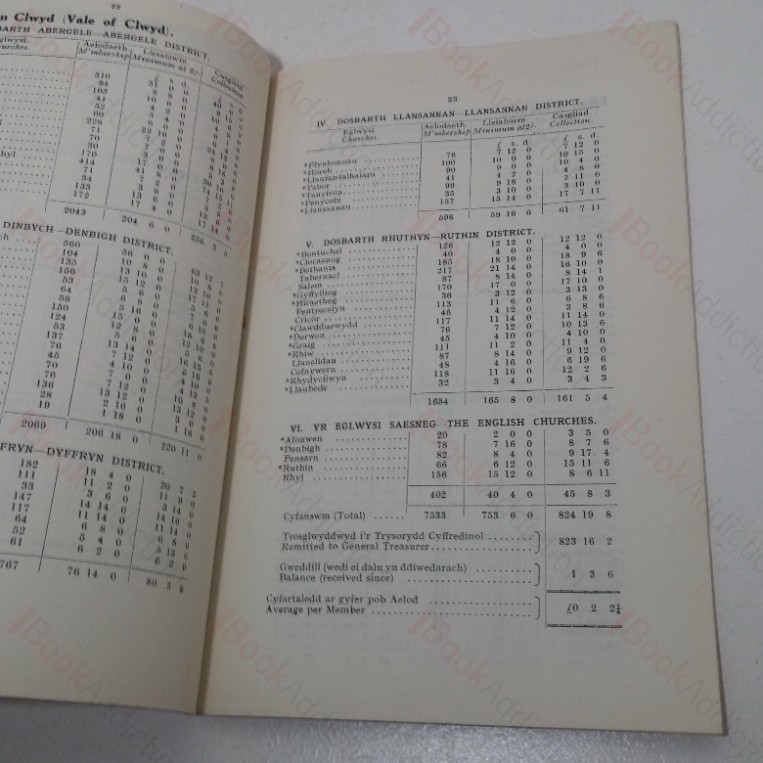 A collection of 13 booklets – annual reports of the Presbyterian Church of Wales (North Wales Association)’s Central Fund for the year 1923-1933, 1935 and 1936 (unfortunately 1934 is missing from the series). Stapled booklets in printed paper wrappers. 8vo. Covers are brittle and browned, oxidised around staples, worn and rubbed at edges with some chips and marks, and bear the stamp of the Welshpool Land Reference Library in the lower right corners. The front cover of the 1926 edition is detached and the covers for the 1931 and blown and misshapen. Generally internally neat and clean but the odd smudge mark and spotting and a little damage at page edges.
