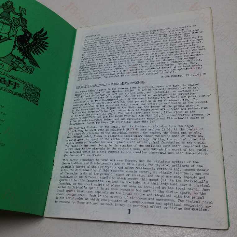 From the introduction: “In this publication…the emphasis is upon the Northern European Tradition of the Elder Faith, that faith which is represented today by the three main Pagan traditions of Wicca, Druidism and Odinism”.